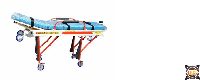 ALL ALUMINUM, Roll in design makes Single person operated loading and unloading easy. Legs fold under cot automatically as cot enters vehicle. Legs automatically lock in place as cot rolls out and under carriage unfolds. High density foam cushion with PVC vinyl cover is an excellent back support and non infectant , with three restraints. The back rest can be adjusted to 80 degrees and the foot rest can be inclined to 15 degrees. Made from aluminum alloy , this stretcher is light and tough and has a 20 times more life cycle than regular Mild Steel ones.