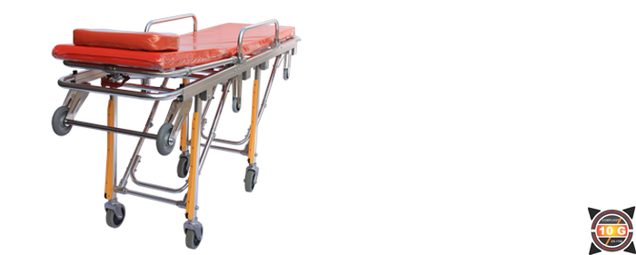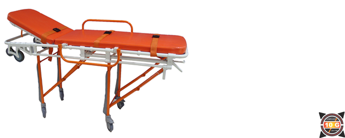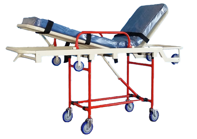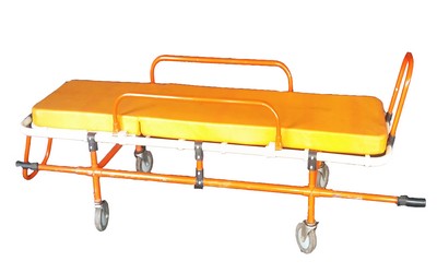 Mild Steel Fabricated , a low budget Roll in design makes Single person operated loading and unloading easy. All Legs fold under cot automatically as cot enters vehicle. Legs automatically lock in place as cot rolls out and under carriage unfolds. High density foam cushion with PVC vinyl cover is an excellent back support and non infectant , with three restraints. The back rest can be adjusted to 80 degrees and the foot rest can be inclined to 15 degrees. Made from Mild Steel .