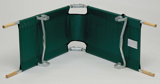 MEE- 55 01Easily set up and compact for storing. This Stretcher is light in weight with shaped hardwood handles. Sheeting is durable coated nylon.