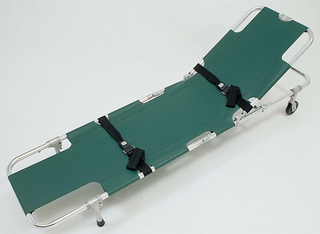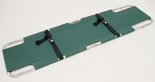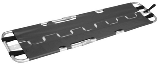 MEE- 55 09These Emergency Stretchers are simple, flat stretchers featuring light weight aluminum frames and heavy duty vinyl coated nylon covers. Exclusive slim line center hinges enable the stretchers to fold for compact storage. These Stretchers include quick release patient restrains.