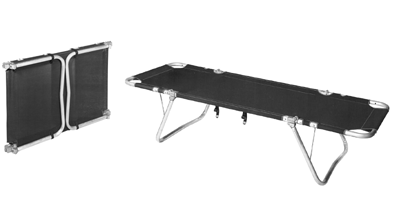 Ideal for heavy duty use in industry or institutions. Constructed of high strength anodized aluminum tubing to military standards. Foldable for convenient storing. Both head and foot ends elevate 15°, 30° and 45° when required.